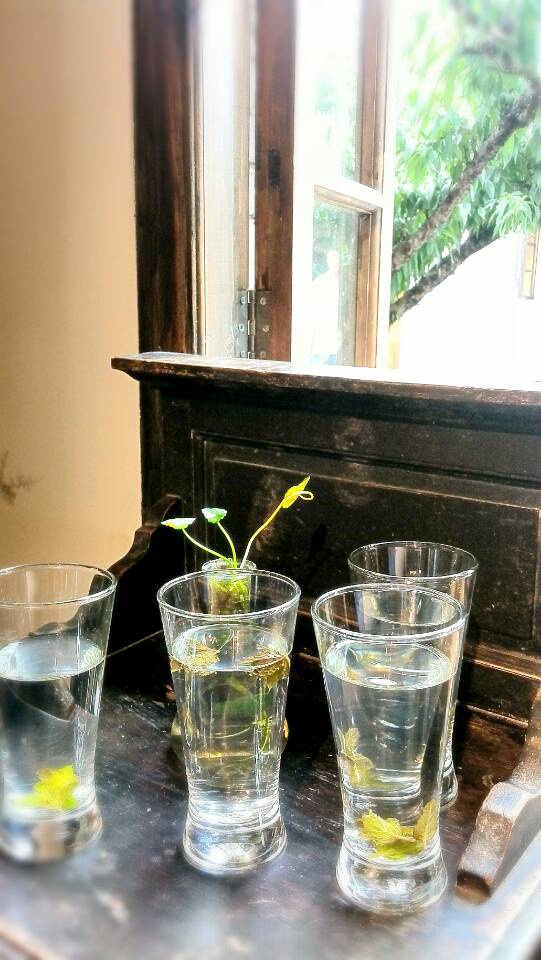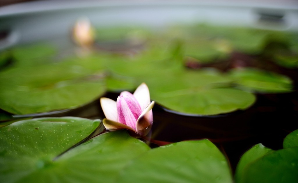 韶光易逝,虽游兴未尽,只能依依惜别,转出门来回首,却看到石盆中的睡莲好似醒了一场好梦,娇滴滴的探出头来,不愧是江南的风物,总带着股慵懒劲儿,感慨之下,低头出门,艳羡这池中物在雨中的又一场好眠了。