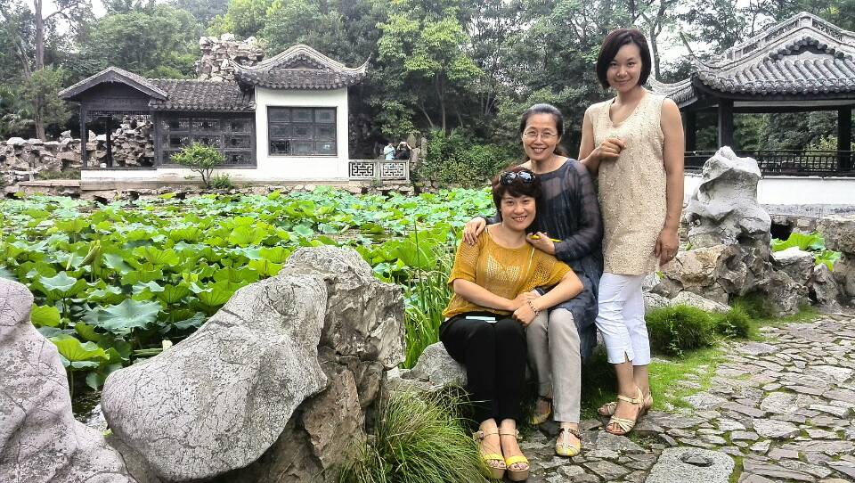 江南园林的精巧细致果然了得,门外只看到白墙黑瓦,入了门里,过了作照壁的太湖石,却是一转一景,柳暗花明。等到行至湖边突然开阔起来,莲叶何田田,鱼戏莲叶间,见此美景,大家也纷纷合影留念。