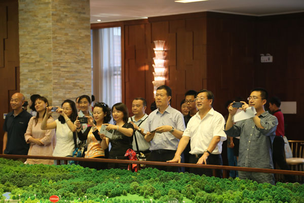 下午4:30时,我们参观了王岩同学所创办的国信集团。这也是我来长春游学的目的之一。我和王岩、郭培君同学是一年级的同学。他上了二年级,我去了西学,在一次午餐时,我们又碰到了一起。席间,王岩同学谈起了他在北京虎峪拿了25300亩地,准备建一个集养老、产品、旅游、服务、金融于一体的综合小镇,对他的设想和规划,我很好奇。一是土地面积足够大,够气魄。二是其设想规划宏伟系统,够超前。当时我说,抽时间你们组织一次长白山游,到你那儿去看一看(2013年王岩、郭培君同学就发出了邀请),当即王岩同学就拍板定在8月份去长春一游。